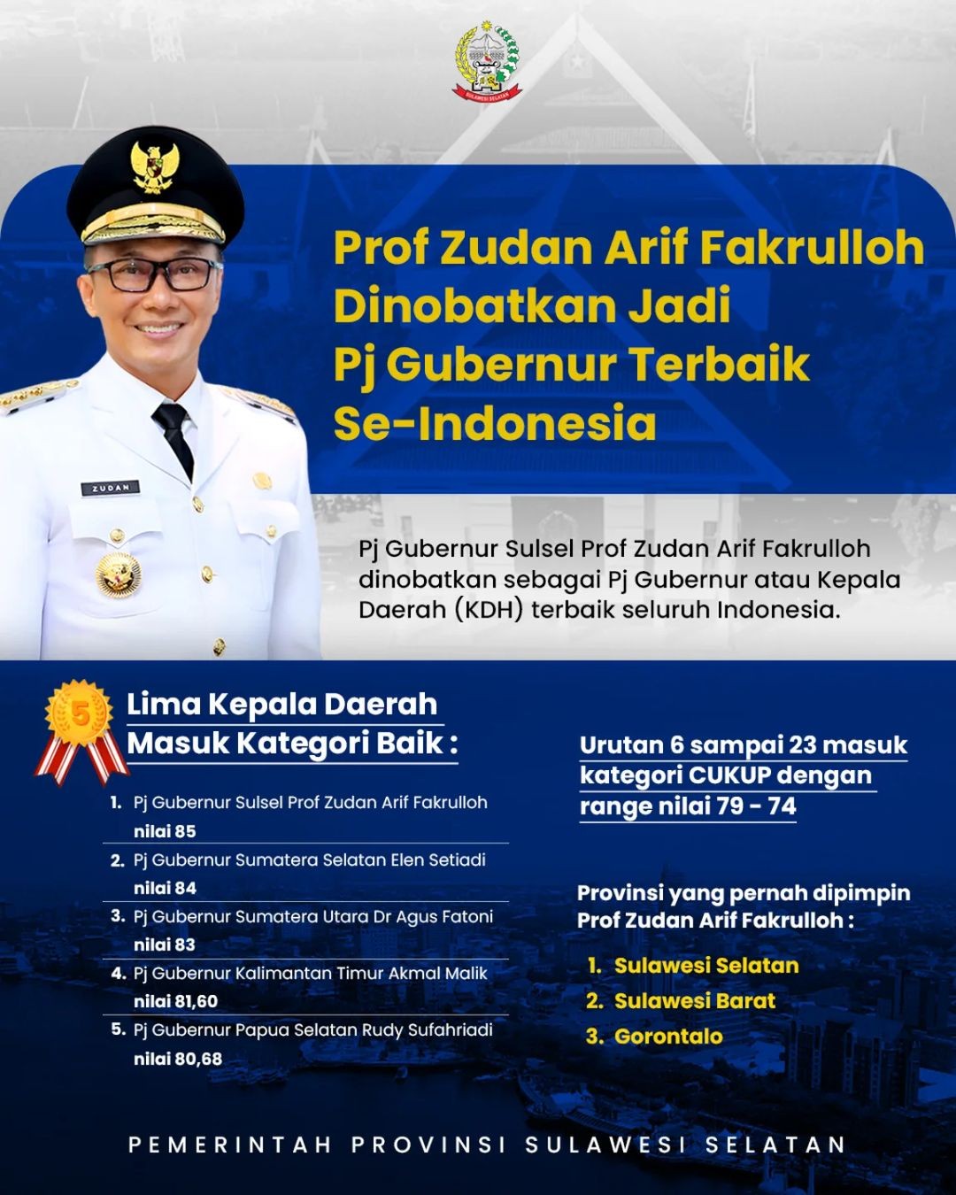 - PJ GUBERNUR SULSEL RESMI DINYATAKAN SEBAGAI PEJABAT GUBERNUR TERBAIK DI INDONESIA