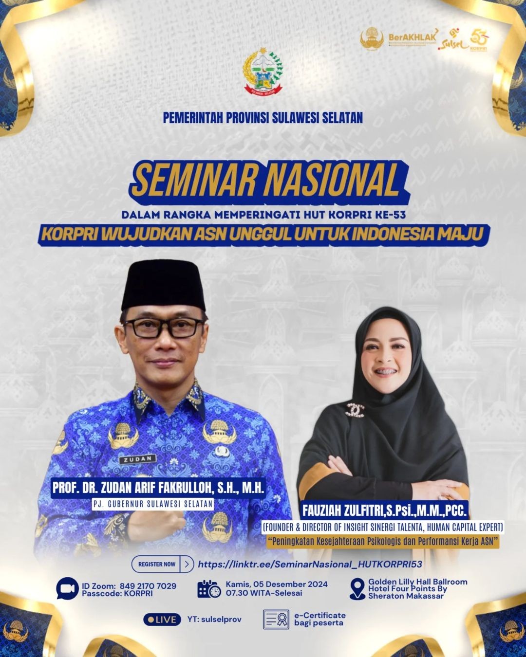 - PEMPROV SULSEL GELAR SEMINAR NASIONAL MEMPERINGATI HUT KORPRI KE 53